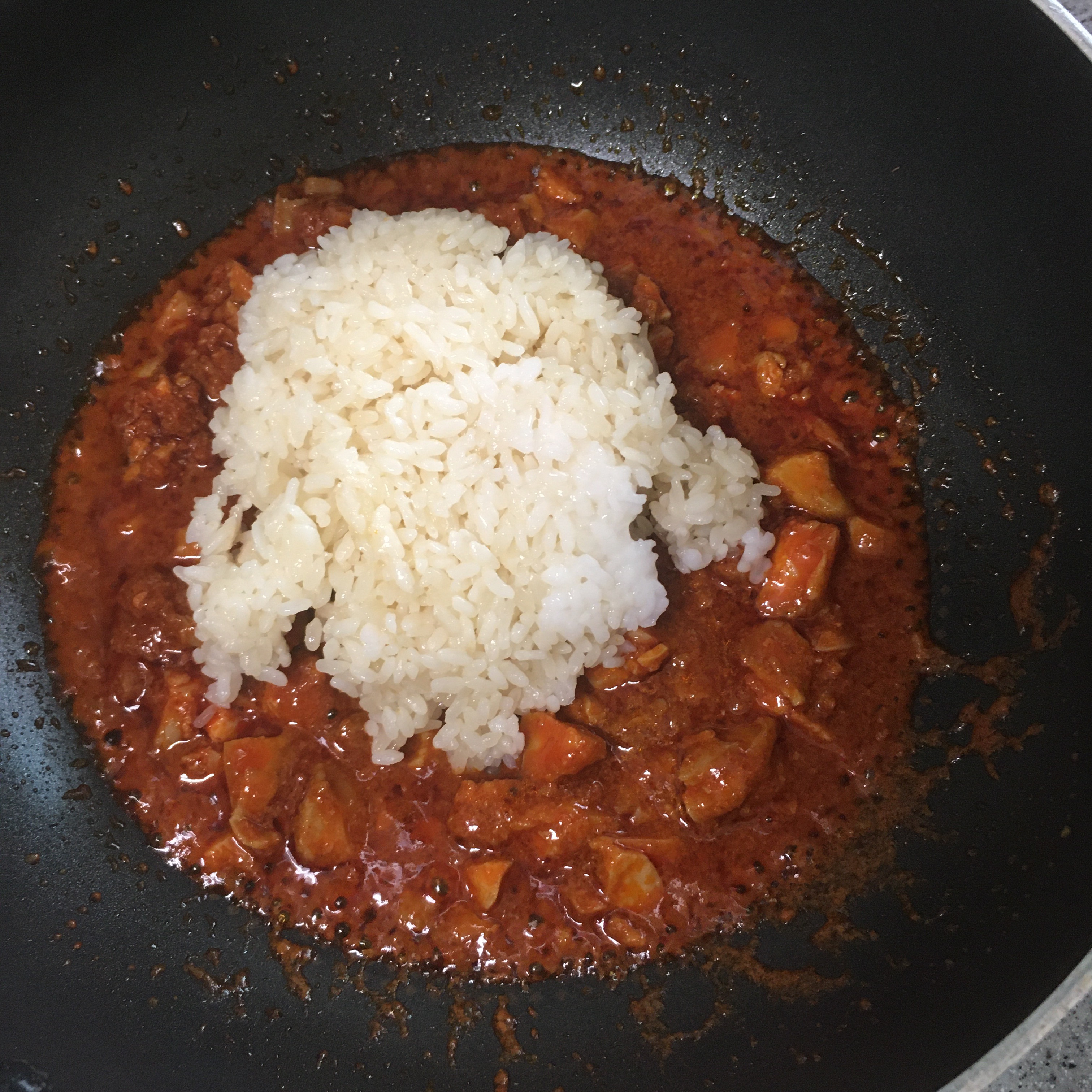 3) 닭갈비가 어느 정도 볶아져 기름이 나오면 밥 투하!!!!